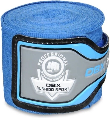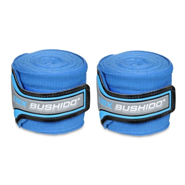DBX BUSHIDO Pro bandager i blå er ideelle til boksning, kickboksning og andre kampsportsgrene. Kombinationen af bomuld og polyester sikrer behagelig elasticitet, åndbarhed og svedtransport, mens den robuste velcro holder bandagen på plads under hele træningen.