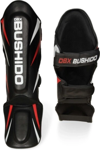 DBX BUSHIDO skinnebens- og vristbeskyttere er designet til intensiv træning i kickboxing, MMA, muay thai og andre kampsportsgrene. Det robuste syntetiske læder med stærkt for øger levetiden og modvirker for tidligt slid. Den formstøbte fyldning af hærdet PUR-skum absorberer slag effektivt og giver pålidelig beskyttelse fra skinneben til vrist uden at hæmme bevægelse.