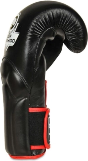 Sikkerheden løftes yderligere af Wrist Protect-systemet – et ekstra lag skum ved håndleddet, en rem mellem tommel og handske mod forstrækning samt en bred, stærk velcrostrop for stabil fiksering. Handskerne i sort-rød udførelse er perfekte til boksning, kickboksning og konditionstræning.