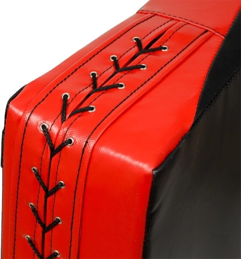 Praktiske ventilationsåbninger spreder lufttrykket ved træf, hvilket mindsker risikoen for skader. I stedet for lynlås anvendes holdbar snøring for styrke og formstabilitet. Den ergonomiske buede form hjælper med at lede teknikker præcist til midten og forhindrer, at lemmer glider uden for målet, hvilket øger trænerens sikkerhed.