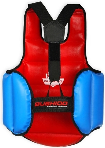 DBX Bushido OT01 er en træningsvest i dobbeltsidet udførelse (blå/rød), der giver et højt beskyttelsesniveau til boksning, kickboksning og MMA. Det kraftige lag polyurethanskum med en tykkelse på 4 cm absorberer effektivt stød, deformeres ikke og bevarer formen selv ved intensiv brug. Takket være den lave vægt hæmmer beskytteren ikke bevægelse og giver fuld samspil mellem teknik og hastighed.