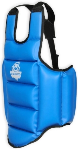 Den robuste overflade af forstærket syntetisk læder tåler hyppig træning og er let at vedligeholde. Justerbare stropper med velcro sikrer hurtig påtagning og en fast pasform på kroppen. Den dobbeltsidede farve gør det nemmere at skelne mellem sparringsparter, hvilket er ideelt til klubtræning og konkurrenceforberedelse.