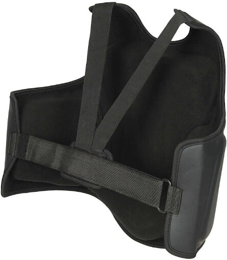 Takket være den lette konstruktion og det ergonomiske design begrænser brystværnet ikke bevægelsesudslaget og sidder komfortabelt på torsoen. Den brede elastiske rem med velcrolukning muliggør hurtig justering og stabil fiksering gennem hele træningen. Det holdbare syntetiske læder øger desuden levetiden og er nemt at vedligeholde.