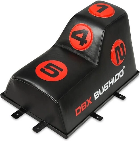Professionelt vægmonteret slagtarget DBX BUSHIDO med konisk forhøjning og 5 nummererede mål er ideelt til hooks, albuer og knæ. Det kombinerer naturligt koskind med tæt polyurethanfyld for fremragende stødabsorption og lang levetid selv ved intensiv træning. Det perfekte supplement til den klassiske sandsæk for præcision, fart og kombinationer.