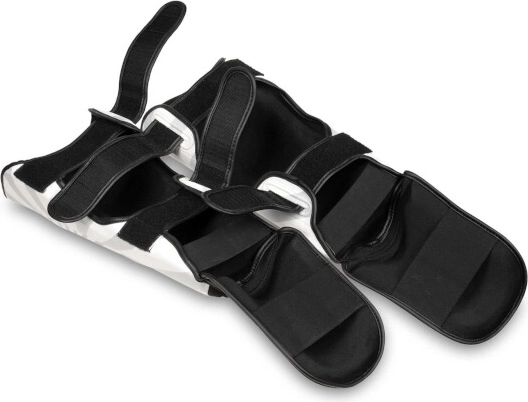 Praktiske, brede og solide stropper gør det muligt at tage beskytterne hurtigt af og på og holder dem på plads selv under dynamiske kombinationer. CE-certificering og 24 måneders garanti understreger produktets kvalitet og sikkerhed.