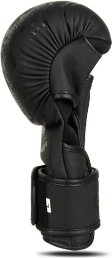 Trænings-MMA-handsker DBX Bushido Black Dragon i slidstærkt syntetisk læder med øget elasticitet tilbyder pålidelig beskyttelse af knoerne, fremragende ventilation og stabil støtte til håndleddet takket være den lange rem. Åben håndflade sikrer sikkert greb og hurtig tørring, mens den beskyttende tommelfingeroverlap reducerer risikoen for skader.