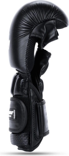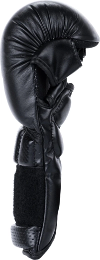Den anatomisk formede profil fremmer en naturlig håndlukning og reducerer risikoen for forstuvninger og fingerskader. Et specialprofileret område ved manchetten forhindrer utilsigtet fastklæbning i velcroen, så handsken sidder sikkert selv ved clinch eller arbejde op ad buret. Takket være den gennemtænkte konstruktion muliggør handsken problemfrit greb og er ideel både til stående kamp og arbejde på gulvet.
