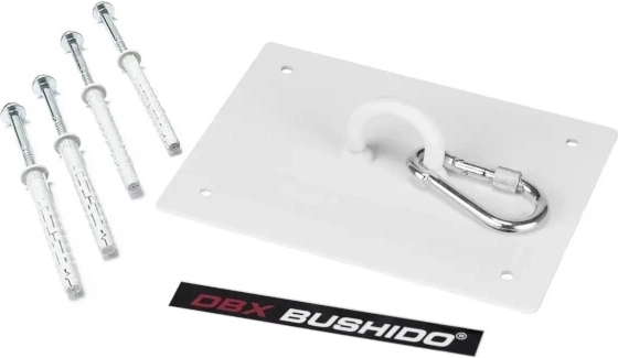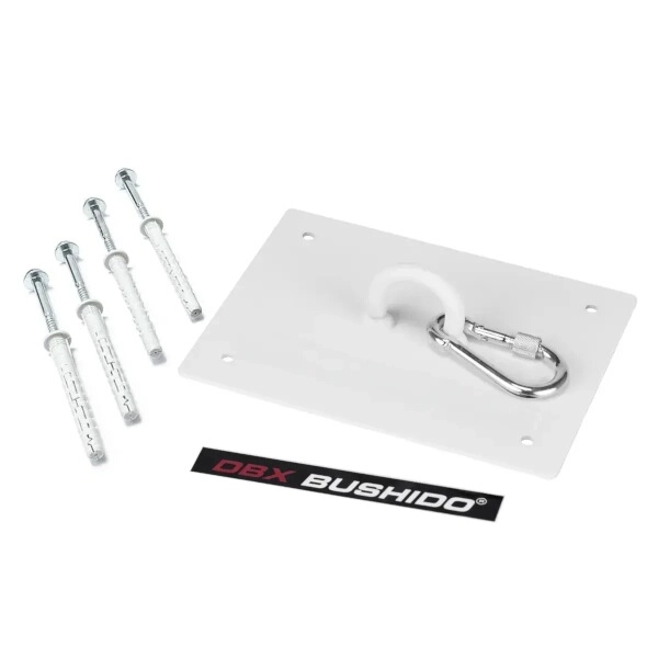 Robust loftbeslag DBX BUSHIDO til bokseposer med bæreevne op til 150 kg. Takket være forstærket stål med en tykkelse på 3 mm, bredt skrueafstand og det medfølgende XL-monteringssæt sikrer det en stabil, sikker og langtidsholdbar montering selv til hård træning.
