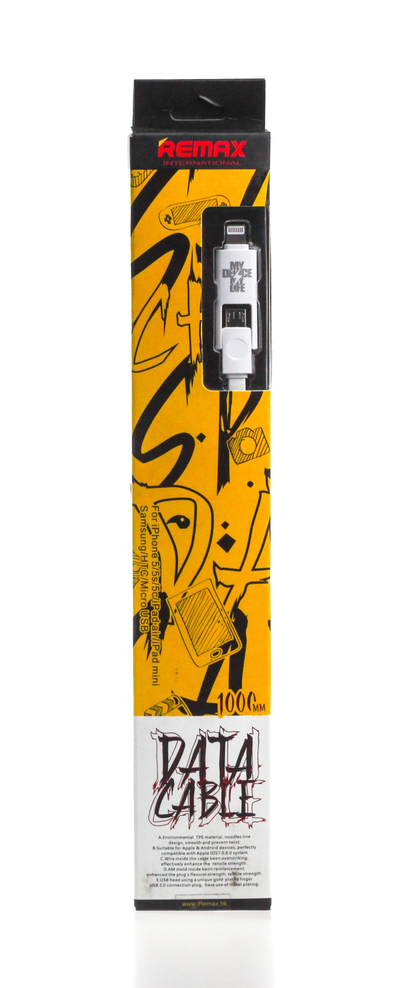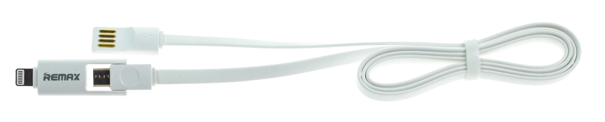 Leder du efter ét kabel til flere enheder? Dette hvide REMAX-kabel med micro USB og medfølgende Lightning-adapter dækker opladning og datasynkronisering for en bred vifte af telefoner og tilbehør, inklusive iPhone 5 og 6. Det lette design passer i lommen, tasken og rygsækken, så du altid har en pålidelig forbindelse ved hånden.