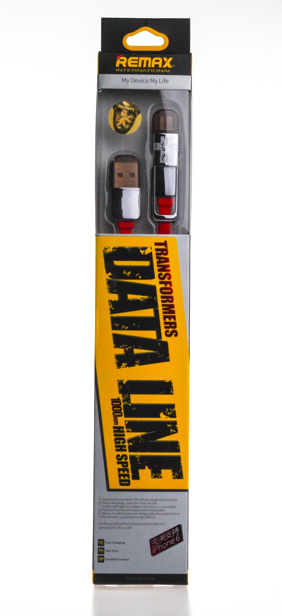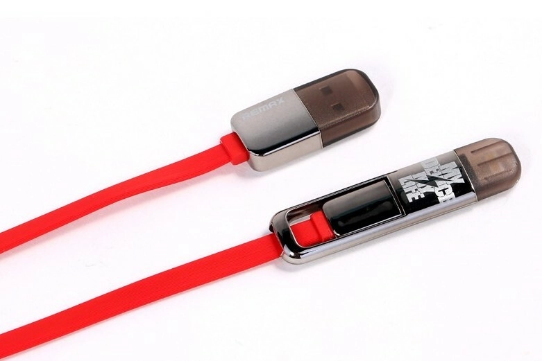 Det praktiske 2-i-1 Remax King-Kong kabel i elegant rød farve forener kompatibilitet for telefoner med micro USB og APPLE-enheder med Lightning-stik. Det flade design minimerer sammenfiltring, og de robuste stik med metalaccent øger holdbarheden og pålideligheden i daglig brug.