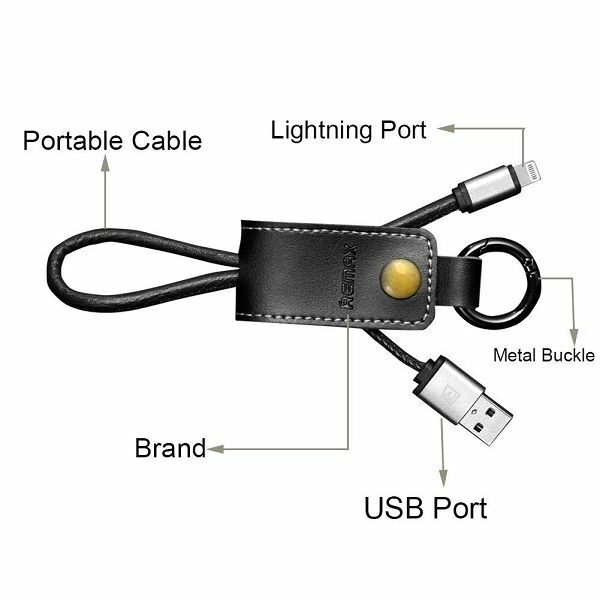 Stilfuldt og praktisk kabel Remax West RC-24i i form af en retro nøglering muliggør hurtig opladning og dataoverførsel. Det har stik micro USB og Lightning, en kompakt længde på 32 cm og et elegant design i sort læder.