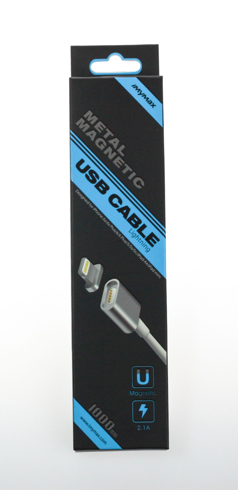Praktisk og holdbar magnetisk MyMax Lightning-kabel i sølvfarve til hurtig opladning og synkronisering af dine Apple-enheder. Understøtter hurtigopladning 2,1 A, har aluminiumstik og en længde på 1 m for bekvem brug derhjemme og på farten.