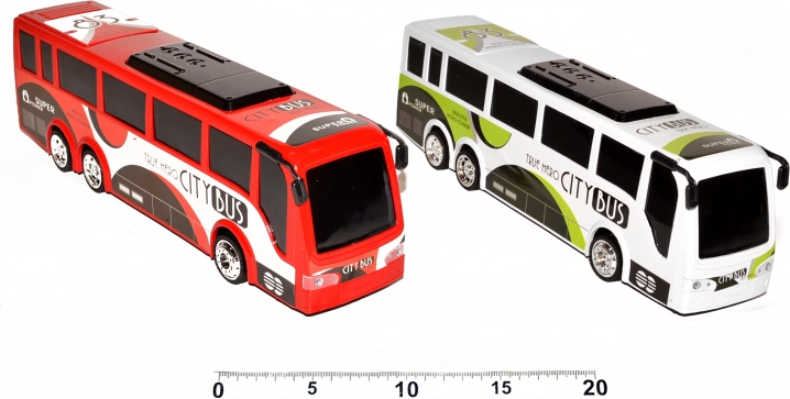 Denne realistiske bus er fremstillet af plast i høj kvalitet, som tåler selv intens børneleg. Med en længde på 35 cm ligger den godt i hånden, er let at håndtere og passer perfekt ind i børns transporteventyr.