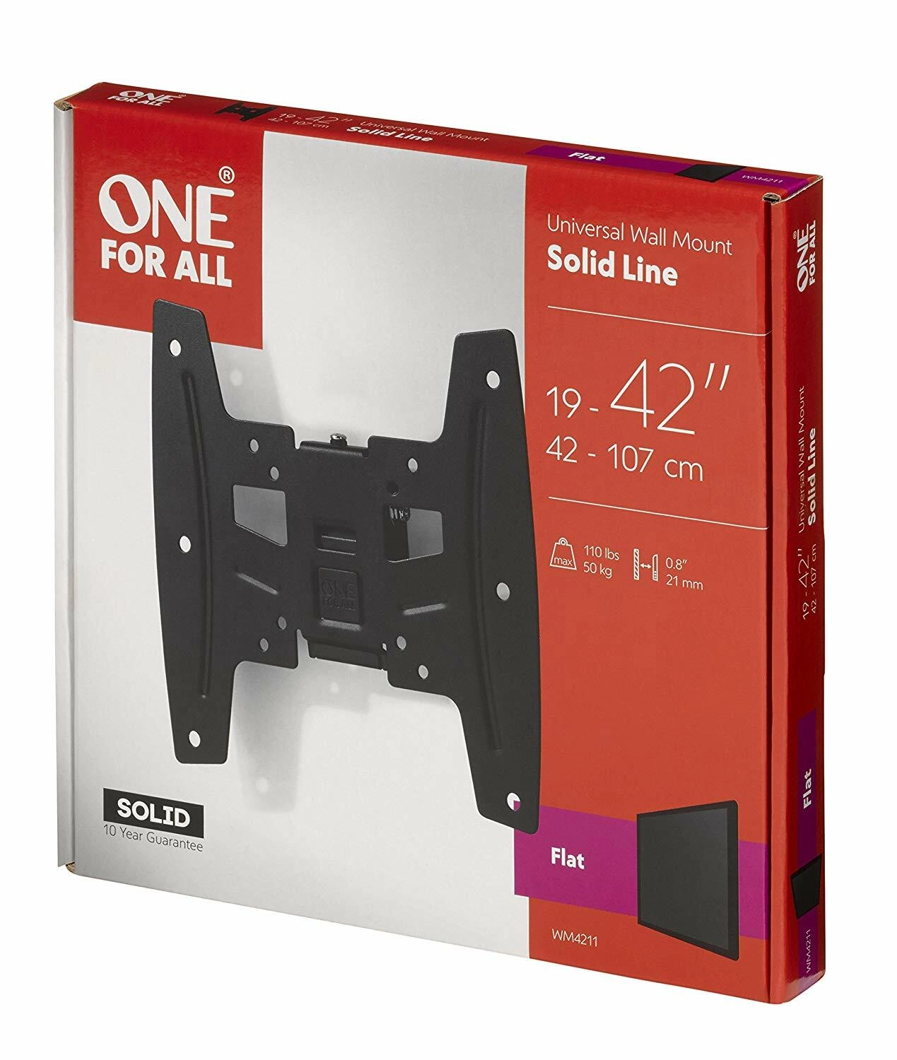 Modellen ONE FOR ALL WM4211 er et pålideligt, fladt vægbeslag, der monterer dit tv tæt på væggen for et rent, moderne interiør. Det lavprofilerede design med en dybde på kun 21,5 mm sparer plads og fremhæver skærmen uden forstyrrende elementer.