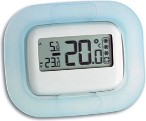 Praktisk digitalt termometer til køleskab og fryser fra TFA, der giver præcis temperaturmåling og nem betjening. Det har et overskueligt display med aktuel temperatur, visning af min./maks.-værdier siden sidste nulstilling og symboler for temperaturområder (stjerner). Med den specielle monteringsramme kan det nemt fastgøres på glasset i en vitrinemontret fryser, og med det udklappelige stativ kan det bekvemt stå på en hylde. Strømforsyningen leveres af det medfølgende CR2032-batteri.