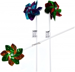 Dette farverige vindspil i holdbar plast vil glæde hvert barn. Takket være den kompakte diameter på 10 cm og den samlede længde på 43 cm ligger det godt i hånden og snurrer fint selv i let blæst. Det er ideelt til haven, altanen, ved vinduet eller som et muntert tilbehør til børneværelset.