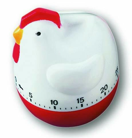 Sødt TFA køkkenur i form af en høne måler tiden under madlavning op til 60 minutter. Kræver ingen batterier, og når tiden er gået, ringer det med en klassisk klokke og dets legesyge design pynter i ethvert køkken.