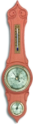 Denne klassiske vægmonterede vejrstation er et ideelt valg til hjem, kontor og sommerhus. Den massive base af kirsebærtræ med markant åretegning og delikat farvetone giver interiøret tidløs elegance, mens de gyldne ringe understreger det repræsentative udseende.