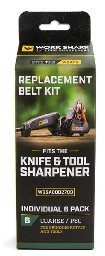 Originale reserve slibebånd fra WORK SHARP med kornstørrelse P80 (grov) i holdbart aluminiumsoxid og i grøn udførelse. Ideelle til hurtig formning og forslibning af æggen. Kompatible med sliberen WSKTS-I WORK SHARP KTS. Pakken indeholder 6 bånd.
