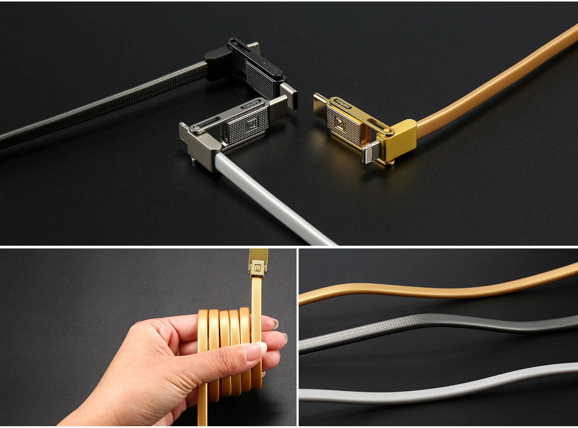 Det universelle kabel Remax RC-070TH er en smart løsning til brugere med flere enheder. Takket være de tre stik USB‑C, Micro‑USB og Lightning tilslutter du nemt smartphone, tablet, trådløse høretelefoner og andet tilbehør uden behov for flere kabler. Kvalitetsledere af kobber og en fleksibel TPE-kappe sørger for pålidelig overførsel og modstandsdygtighed ved daglig bøjning.