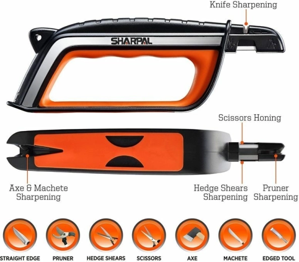 Multifunktionel sliber Sharpal 103N til hurtig og sikker vedligeholdelse af æg derhjemme og i haven. Tre slibespalter med forudindstillet vinkel og karbid- samt keramisk skinne sikrer effektiv genopretning af skarphed på knive, sakse, plæneklipperknive, macheter, økser, hakker og mejsler. Behagelig brug understøttes af stort, blødt håndtag, skridsikker bund og øje til snor.