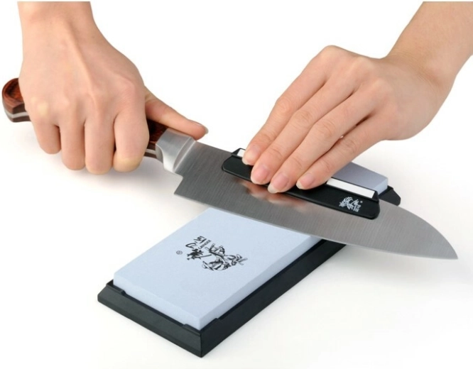 Kvalitets slibesten fra Taidea med kornstørrelse 240 grit til hurtig formning af æggen og genopretning af vinklen på stumpede knive og værktøj. Fremstillet af holdbar korund (aluminiumoxid) med en skridsikker gummibase for sikker brug. Kan anvendes med vand eller olie og kan uden bekymring opbevares langvarigt i vand.
