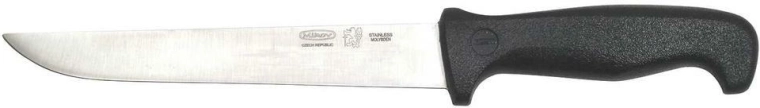 Alsidig kokke- og slagterkniv MIKOV BUTCHER 20 cm til daglig brug i hjemmet og værkstedet. Tilbyder en slanket klinge i rustfrit stål 425 med glat skær og høj skæreevne. Takket være det ergonomiske håndtag af holdbar sort plast ligger den godt i hånden og sikrer sikkert arbejde. Certificeret til kontakt med fødevarer i henhold til EU-standarder. Fremstillet i Tjekkiet – Mikulášovice.