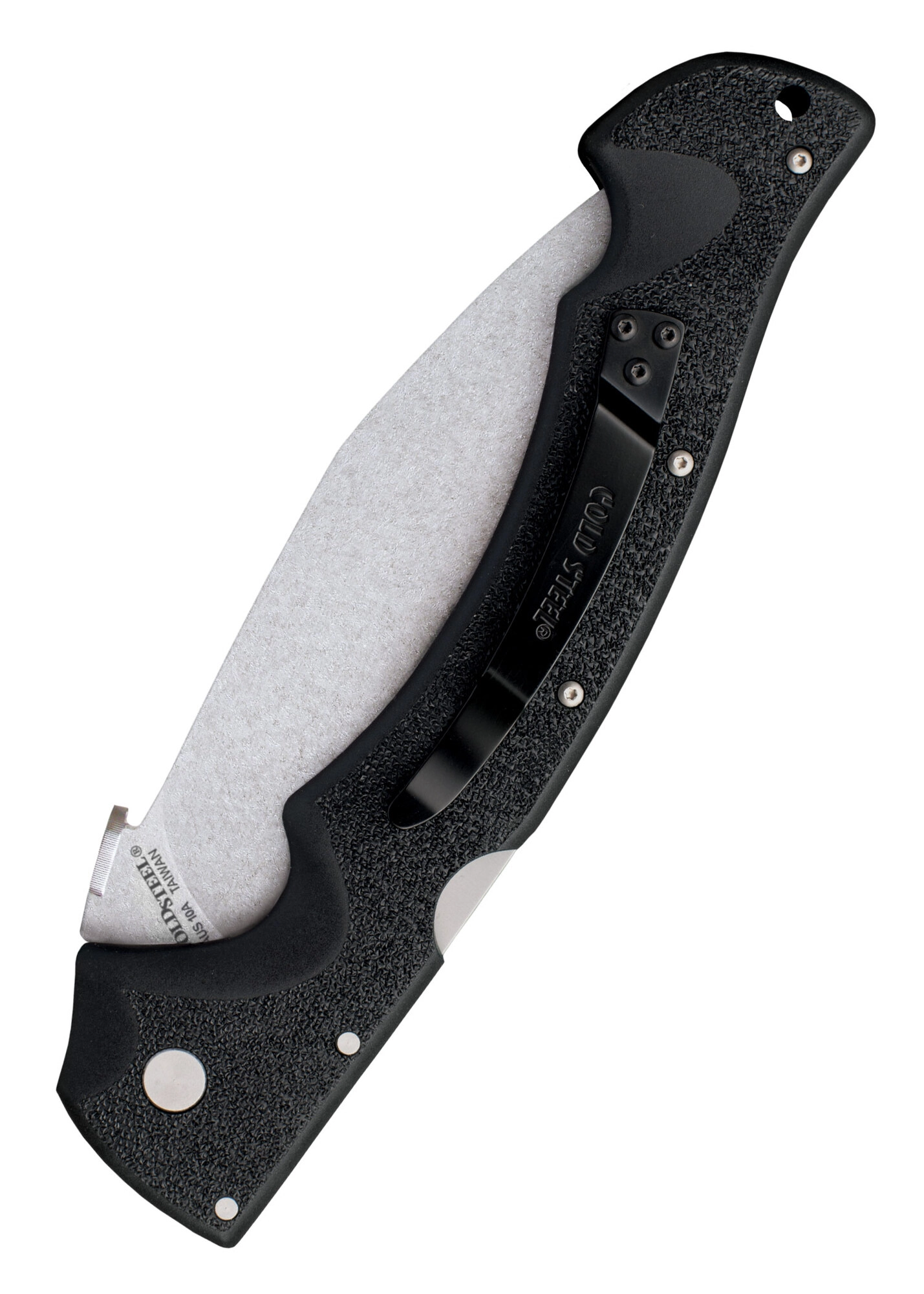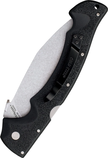 Cold Steel Rajah II leverer ydeevnen fra en stor kukri i et kompakt foldeformat. Den japanske ståltype AUS-10A med en fremragende balance mellem sejhed og slidstyrke, kombineret med en stonewash-overflade, skjuler små ridser bedre og reducerer friktionen under skæring. Kukrigeometrien muliggør effektiv hugning og dybe snit med minimal anstrengelse.