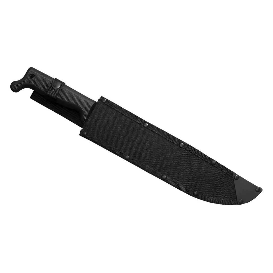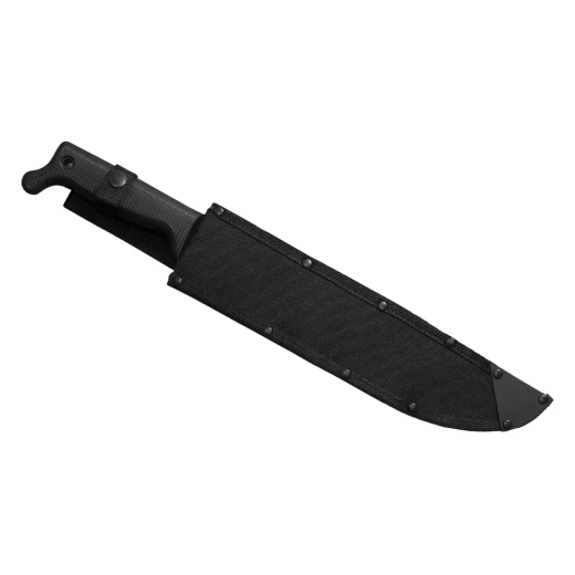 Leder du efter et pålideligt værktøj til skov, lejrliv eller have? Cold Steel Bowie macheten tilbyder en fremragende balance mellem kraft, kontrol og holdbarhed. Bowie-klingen klarer beskæring af grene, rydning af krat og forberedelse af brænde til bål. 1055-stål er kendt for sin sejhed og tåler hård brug; den sorte belægning hjælper med at beskytte mod korrosion og uønskede refleksioner.