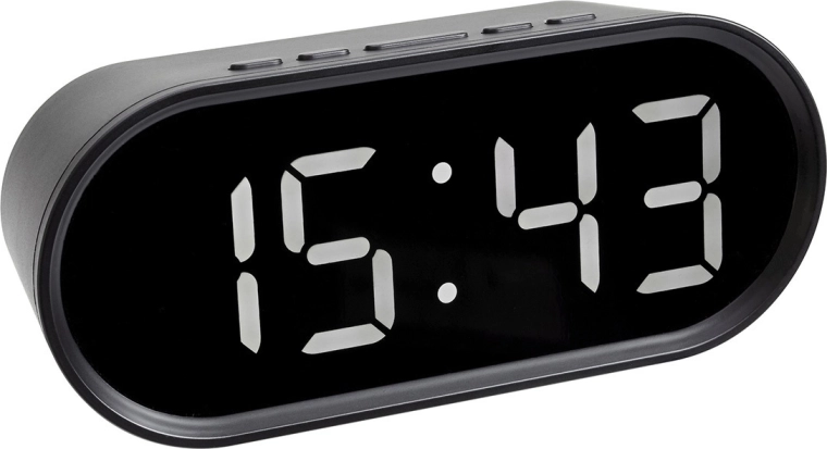 - Letlæseligt display: store hvide LED-cifre med 2 lysstyrkeniveauer