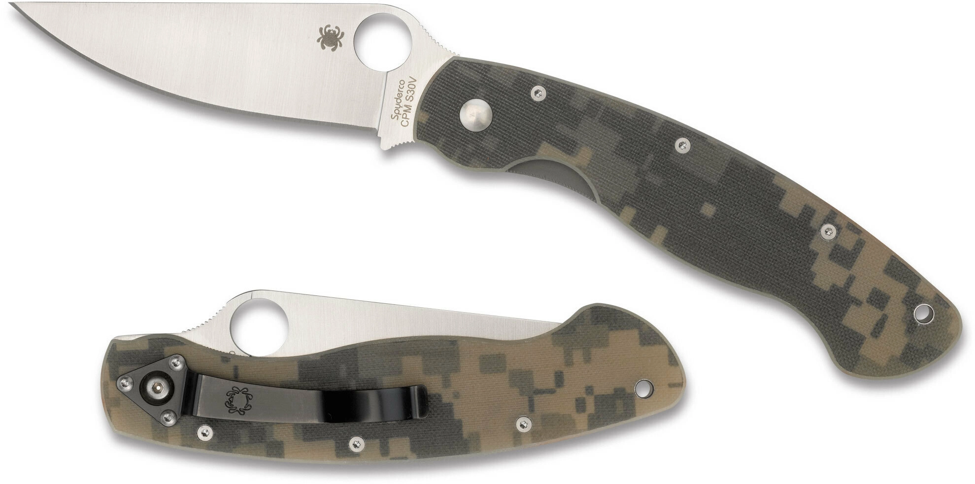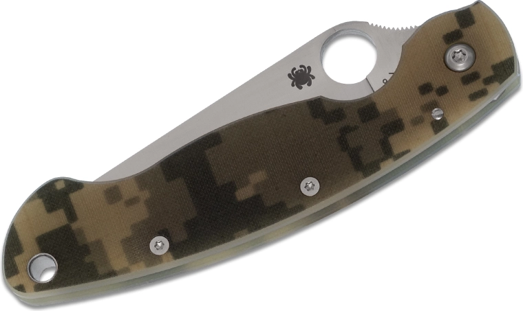 Den taktiske lommekniv SPYDERCO Military Digital Camo er designet til krævende brug og daglig EDC. Den tilbyder en klinge i CPM-S30V-stål med satineret finish, en pålidelig Liner Lock-lås og et let, men robust G10-skæfte med digitalt camouflagemønster og bæreklemme.