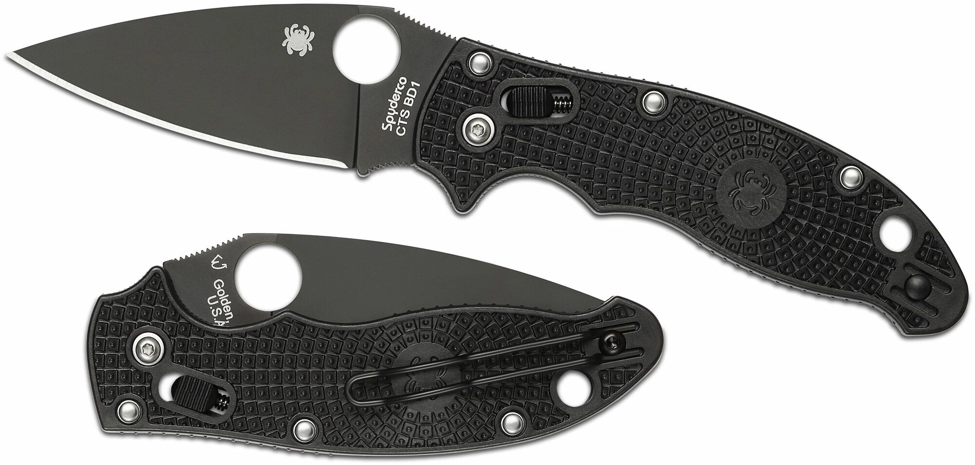 Spyderco Manix 2 Lightweight Black er en populær EDC-kniv, der kombinerer lav vægt, høj holdbarhed og et taktisk udseende. Klingen med fladt slib i Carpenter BD-1 stål har en sort, ikke-reflekterende DLC-overflade for bedre modstand mod slid og korrosion. Åbningen er hurtig og intuitiv takket være det karakteristiske tommelfingerhul fra Spyderco.