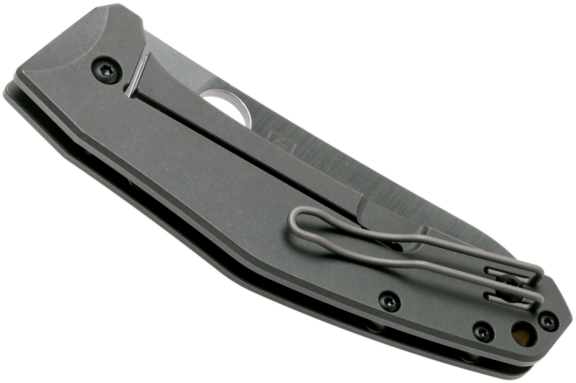 Håndtaget af massive titanium-skaller er let, stærkt og holdbart. Den integrerede lås Reeve Integral Lock (RIL) giver høj sikkerhed under brug. Kniven åbnes med det karakteristiske tommelhul i klingen, og den har både lanyard-hul og reversibel lommeklips for behagelig bæring.