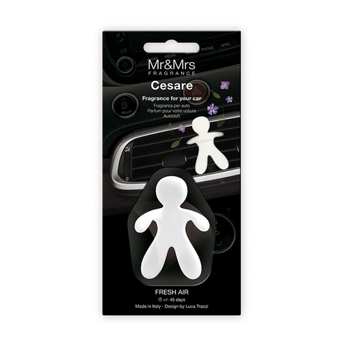 Den stilfulde duftfrisker til bilen Mr & Mrs Fragrance Cesare Fresh Air forvandler hver køretur til en behagelig oplevelse. Figuren Cesare gør interiøret hyggeligt, fylder kabinen med duft og skaber en harmonisk atmosfære med en kombination af citrus- og trænoter.