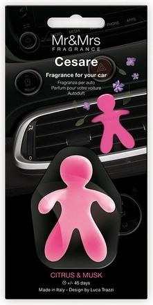 Den designede figur CESARE fra mærket MR & MRS FRAGRANCE er et ikonisk tilbehør, der ikke kun ser godt ud, men også pålideligt dufter din bil. Kombinationen af citrusnoter og blid musk skaber en afbalanceret, diskret atmosfære, der er velegnet til daglig kørsel.