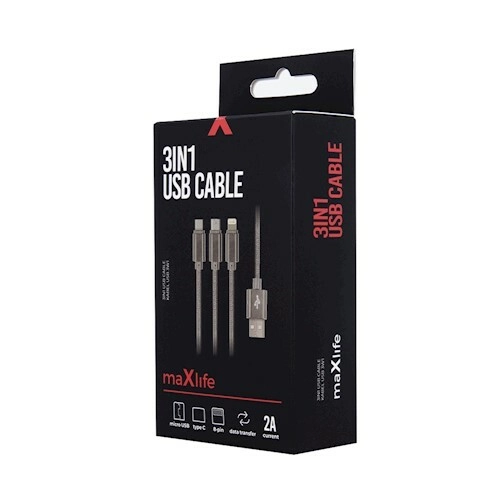 Leder du efter ét kabel til alle dine enheder? Maxlife 3-i-1 kombinerer stikene Lightning, USB‑C og microUSB, så du nemt oplader telefon, høretelefoner, powerbank og andet tilbehør fra én kilde. Strøm på 2,1 A sikrer hurtig energipåfyldning og sparer din tid.
