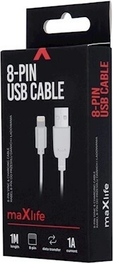 Det universelle Maxlife‑kabel med 8‑pin stik til iPhone, iPad og iPod sikrer pålidelig opladning på 1 A og stabil dataoverførsel. Takket være 1 m længde og fleksibel konstruktion er det nemt at bruge både hjemme og på farten.