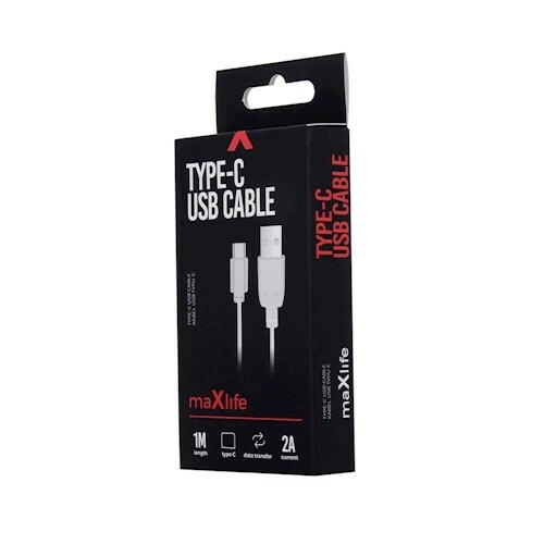 Det universelle hvide Maxlife‑kabel med USB‑C‑stik sikrer hurtig opladning på 2 A og pålidelig dataoverførsel til moderne smartphones og andre enheder. Takket være længden på 1 m tilbyder det nem brug derhjemme, på kontoret og på farten, mens den fleksible udførelse gør daglig håndtering lettere.