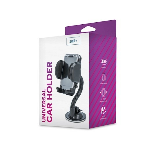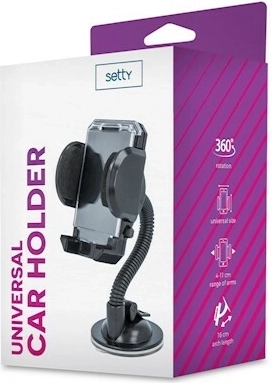 Den universelle holder SETTY er den ideelle løsning til sikker og bekvem placering af telefon eller GPS under kørsel. Den stærke sugekop sikrer fast og stabil montering på forruden, mens den fleksible konstruktion muliggør optimal vinkeljustering for bedre synlighed og betjening.