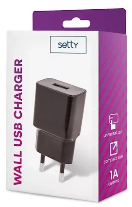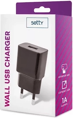 Den praktiske vægoplader fra SETTY leverer en stabil udgang på 5 V / 1 A, som er skånsom mod batteriet og velegnet til de fleste mindre enheder. Den enkelte USB-port gør det nemt at tilslutte almindelige kabler og oplade uden unødige komplikationer.