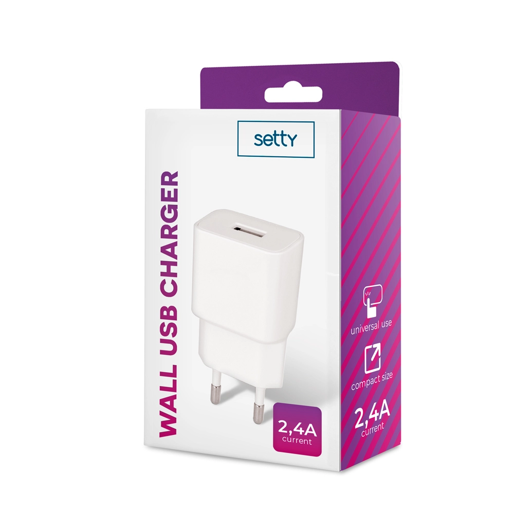 Den praktiske og lette USB-oplader fra Setty med op til 2,4 A er et fremragende valg til daglig brug derhjemme, på kontoret og på farten. Takket være den standardiserede USB-udgang på 5 V kan den effektivt forsyne telefoner, hovedtelefoner, powerbanks og andet småelektronik.