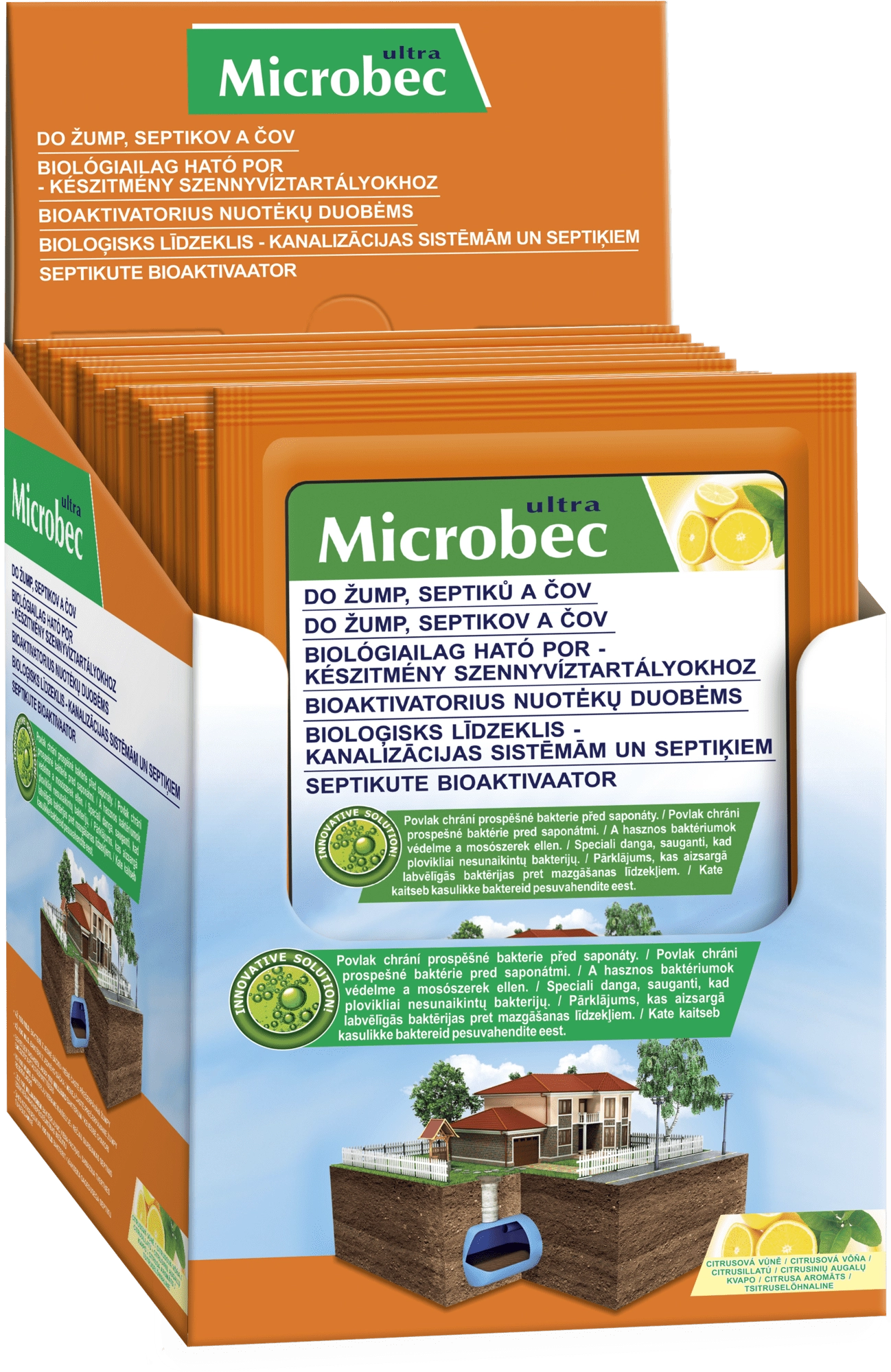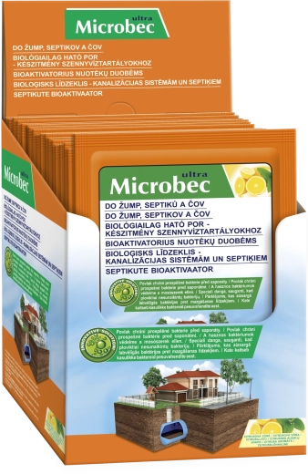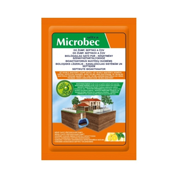 BROS Microbec er et pålideligt middel til langtidspleje af bundfældningstanke, septiktanke og husholdningsrensningsanlæg. Den unikke blanding af bakterier og enzymer arbejder i tre faser – adskiller hurtigt affaldet, flydliggør det og enzymatisk nedbryder det efterfølgende til miljøskånsomme stoffer og vand.