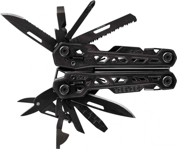 Det multifunktionelle værktøj GERBER Truss Black bygger på den populære model Suspension, men er lettere og endnu mere praktisk. Butterfly-åbning med fjedermekanisme sikrer hurtig ibrugtagning og komfortabel betjening, mens den præcise, spidse tang med fine riller giver sikker fastholdelse selv i trange rum.