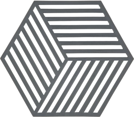 Underlaget Zone Hexagon kombinerer funktionalitet og et minimalistisk udtryk. Den sekskantede form med grafisk mønster skaber en moderne accent i køkkenet og isolerer samtidig varme genstande sikkert fra bord- eller bordpladens overflade.