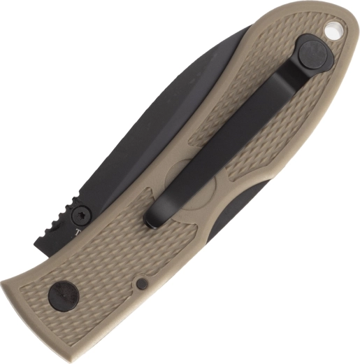 De teksturerede skæfteskaller af Zytel i nuancen Coyote Brown giver sikkert greb selv i vådt føre. Den praktiske tommelstud muliggør enhåndsåbning, lommeclippen kan flyttes til den anden side, og hullet til snor udvider bæremulighederne. En fremragende EDC-løsning til by, arbejde og ture.