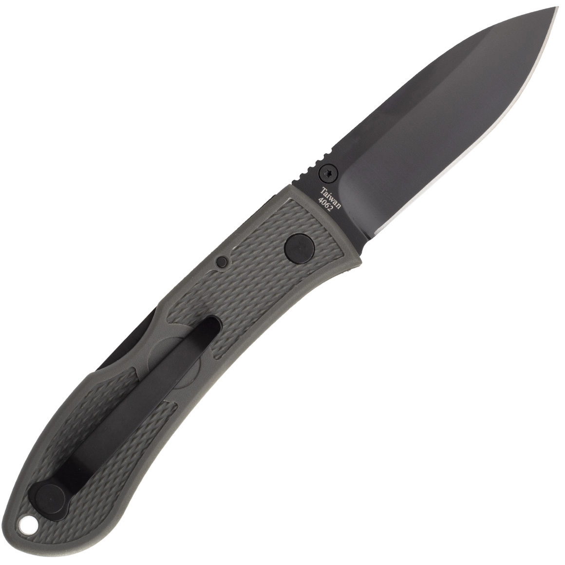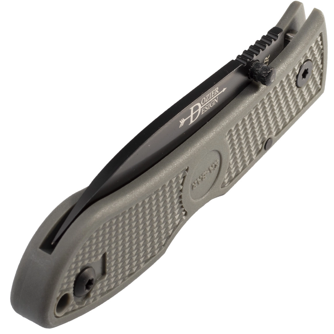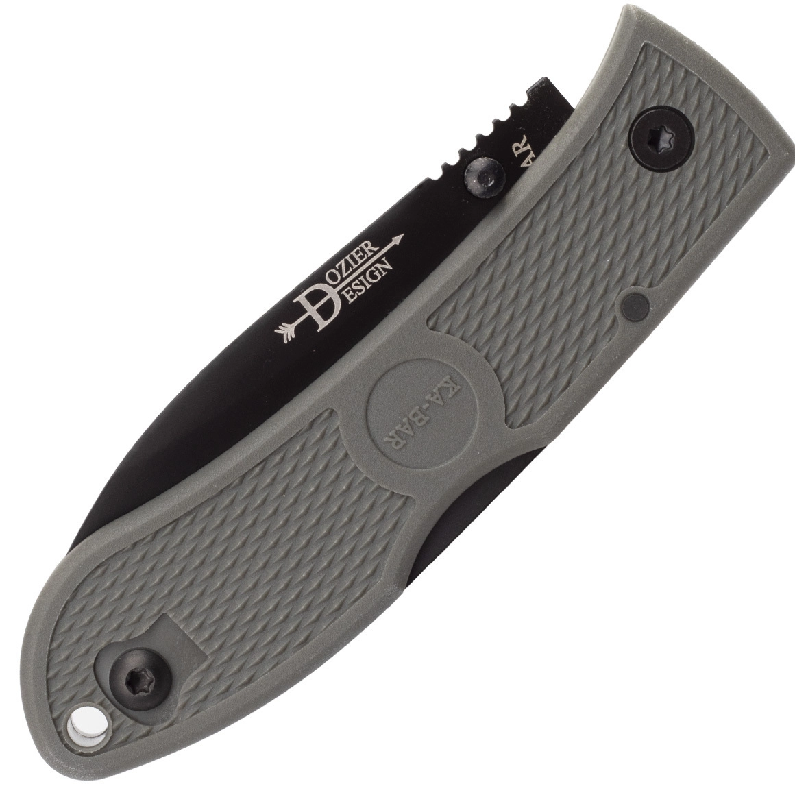 KA-BAR Dozier Hunter er en pålidelig foldekniv til hverdagsbrug. Den tilbyder glatte og præcise snit takket være AUS-8A-stål med sort overfladebehandling, som reducerer genskin og øger korrosionsbestandigheden. Énhånds åbning sikres af tommelstud, og sikker fastlåsning i åben position varetages af Back Lock.