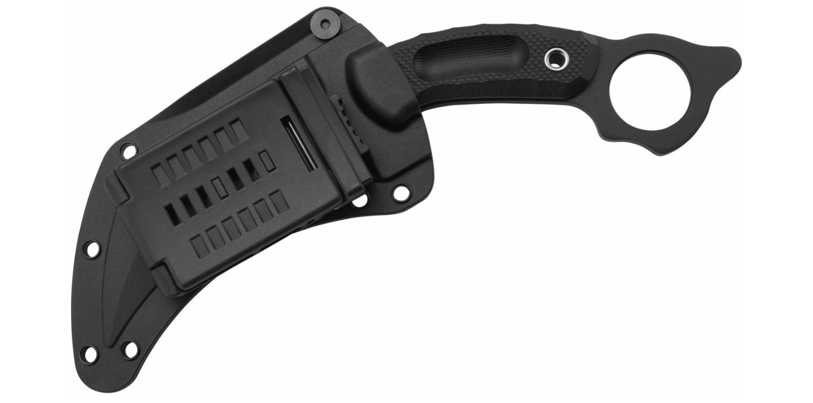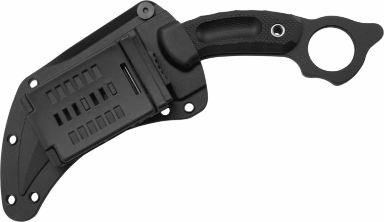 Den gennemgående full-tang-konstruktion sammen med de robuste skæfter i G10 giver et fast og sikkert greb. Den store ringåbning i grebets ende forbedrer retention og kontrol ved taktiske grebsskift. Sættet inkluderer en let og robust GRN-skede for sikker opbevaring og hurtig trækning.