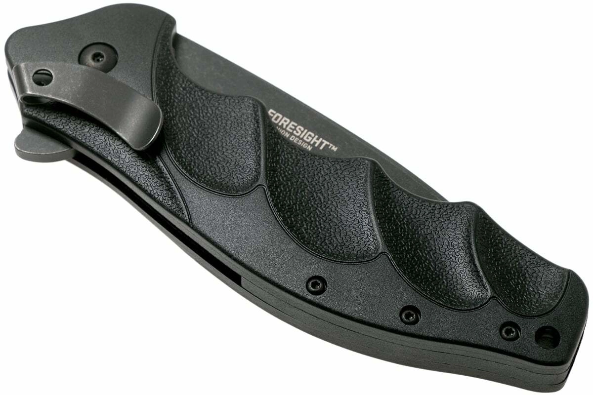 Tekstureret FRN-greb med markante fingerfordybninger, jimping og lommeklip for behagelig og sikker EDC-bæring.