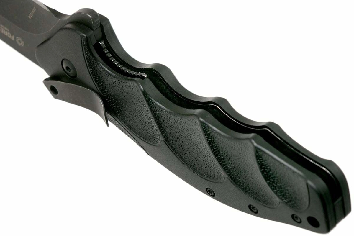 Det ergonomiske FRN-greb med markante fingerfordybninger giver komfort og kontrol selv ved længerevarende arbejde. Sikker betjening sikres af Liner Lock, og der er både lommeklip til diskret bæring og lanyard-hul til ekstra sikring eller personlig tilpasning.