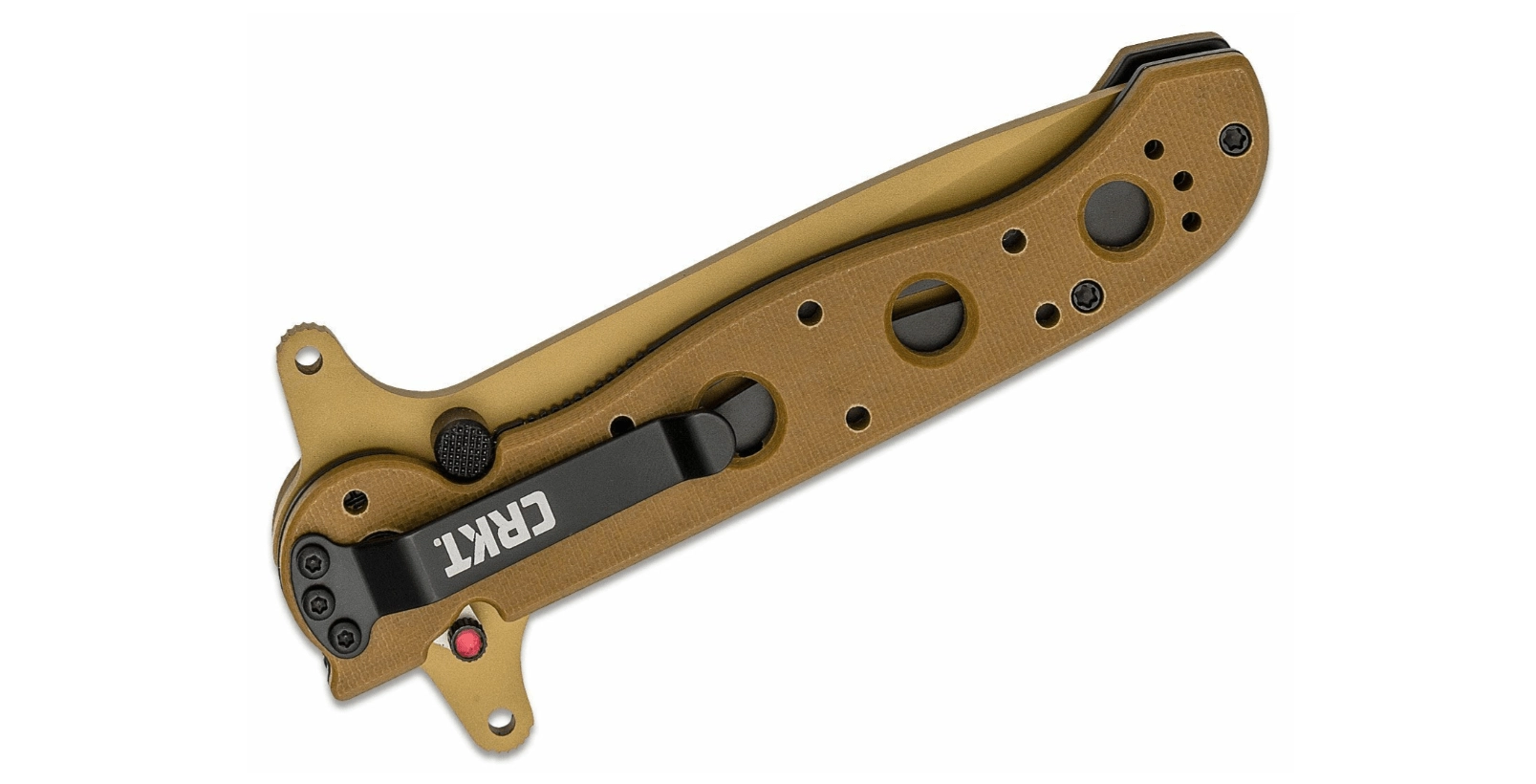 CRKT M16-13DSFG Special Forces er en populær taktisk foldekniv designet til pålidelighed og hurtig ibrugtagning. Tanto-bladet i rustfrit stål 8Cr14MoV i sandbrun finish kombinerer fremragende penetration med spidsen, høj holdbarhed og en delvist savtakket æg Veff Serration til effektiv skæring af fibrøse materialer.
